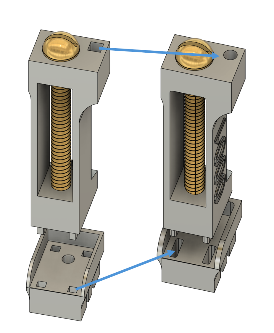 There are additional design differences between the 3Dneuro/Open Ephys version and the Vöröslakos et al. version, due to the choice of machining for manufacturing the parts. The metal microdrive consists of three main parts: A drive body, a movable arm that we often call the shuttle, and a removable base.