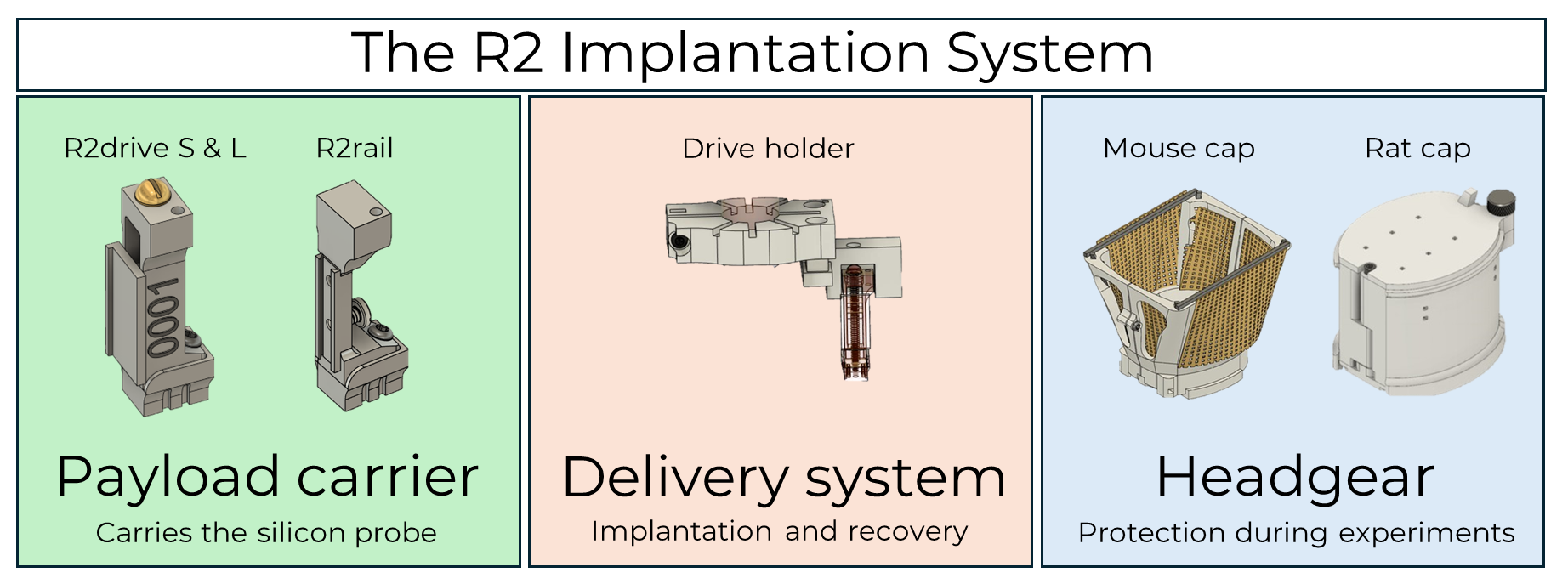 Overview of the R2 Implantation System. Images in this and the following illustrations are partially modified from [1], under CC BY 4.0 license.#
